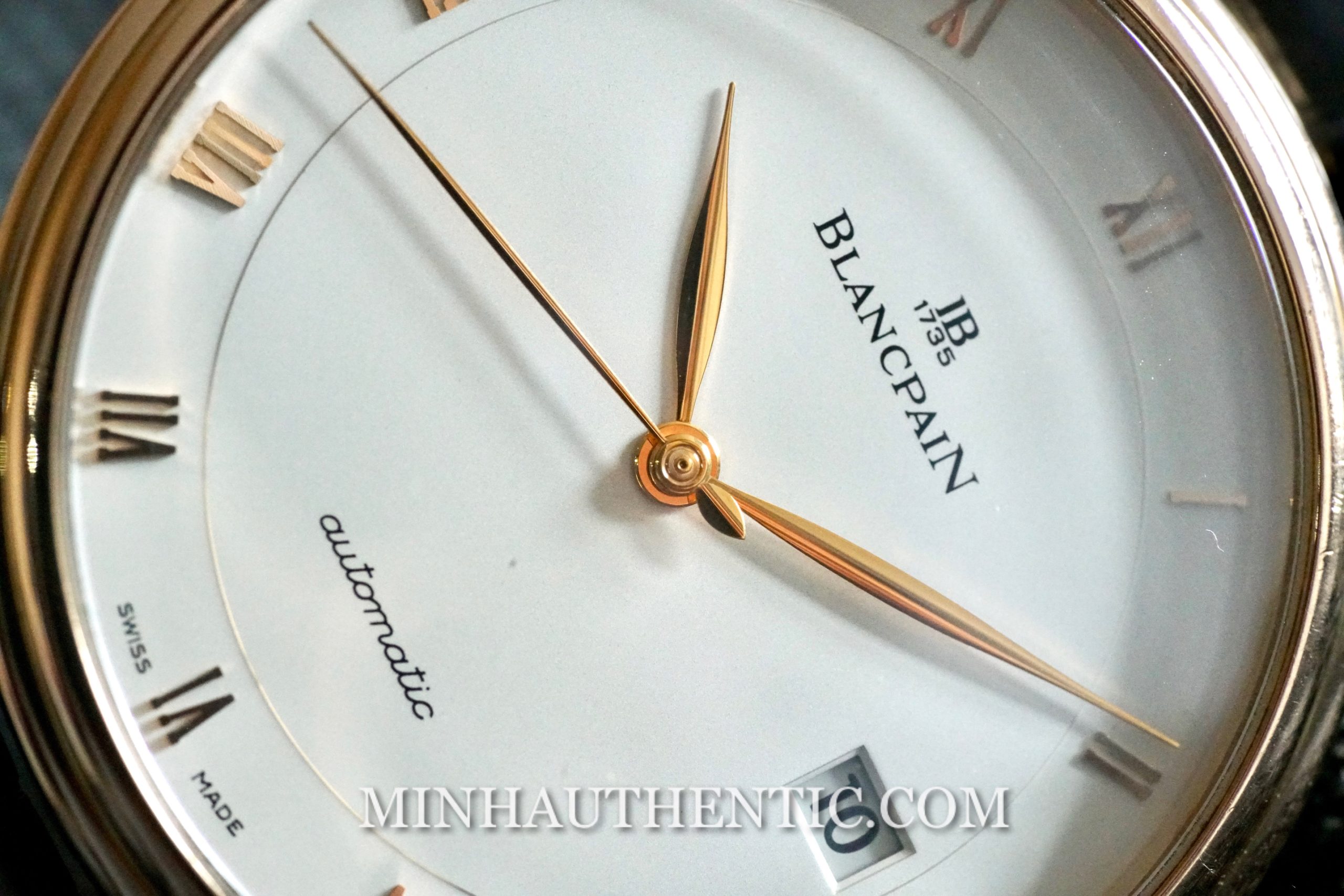 Đồng hồ nam Blancpain Villeret Ultraplate 18k Rose Gold Automatic 6223-3642-55 với bộ máy in-house 1150 cót 100h. Vỏ vàng hồng 18k. Tình trạng đẹp nguyên bản, khoá cài vàng hồng 18k. Không hộp sổ.