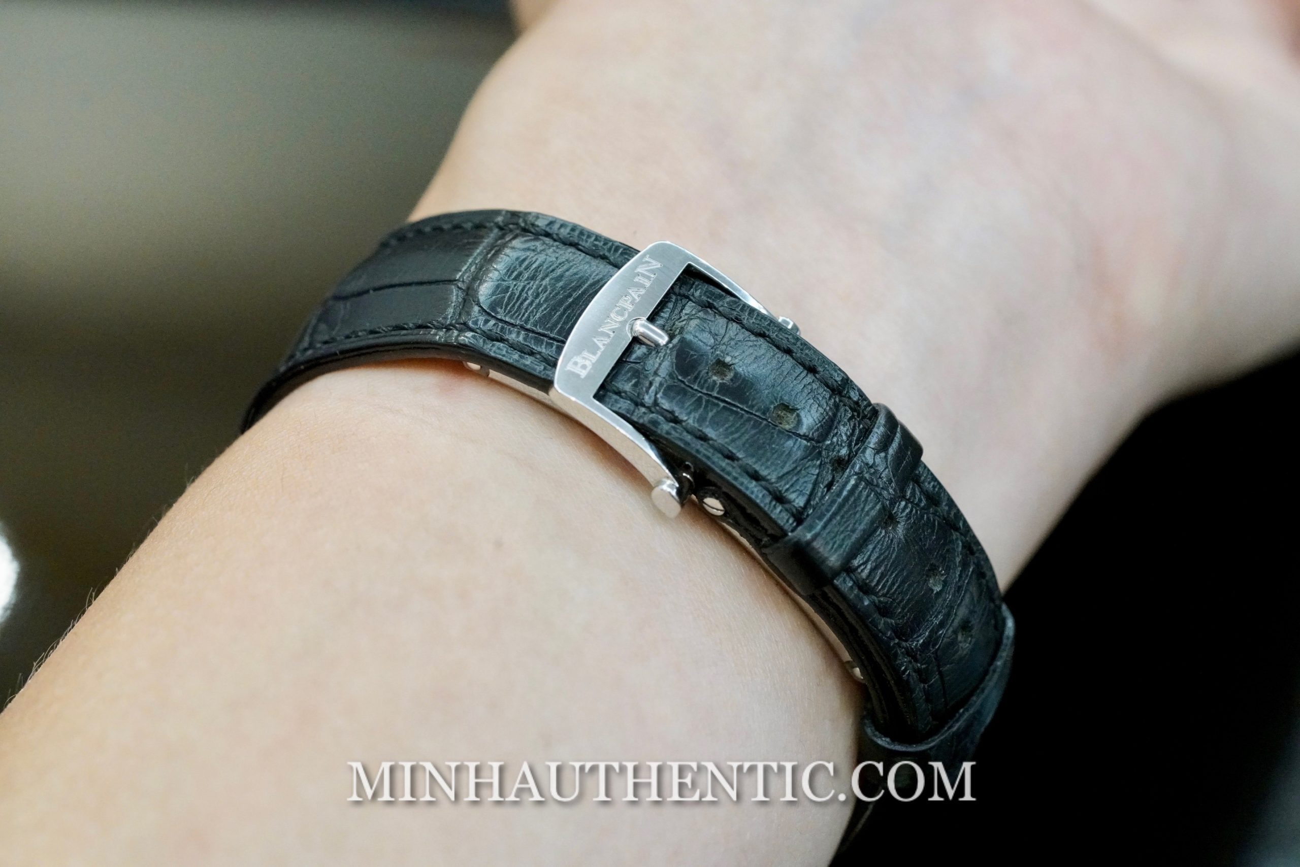 Một điểm đặc biệt của những mẫu Blancpain thế hệ gần đây, đó là khoá gập được thiết kế khá độc đáo. Không có phần tì giữ, bấm mở như thông thường, mà nó sử dụng một lưỡi kim loại chạy từ đầu này sang đầu kia, tì vào phần gập ở mỗi bên. Mỗi khi đóng khoá, chỉ cần gập nhẹ vào là lưỡi kim loại sẽ tự ép phần gập vào hẳn. Còn khi mở, chỉ cần nhấc mặt khoá lên là lưỡi kim loại sẽ ép phần gập bật ngay ra. Cơ chế này giống với cơ chế mà Richard Mille cũng sử dụng.