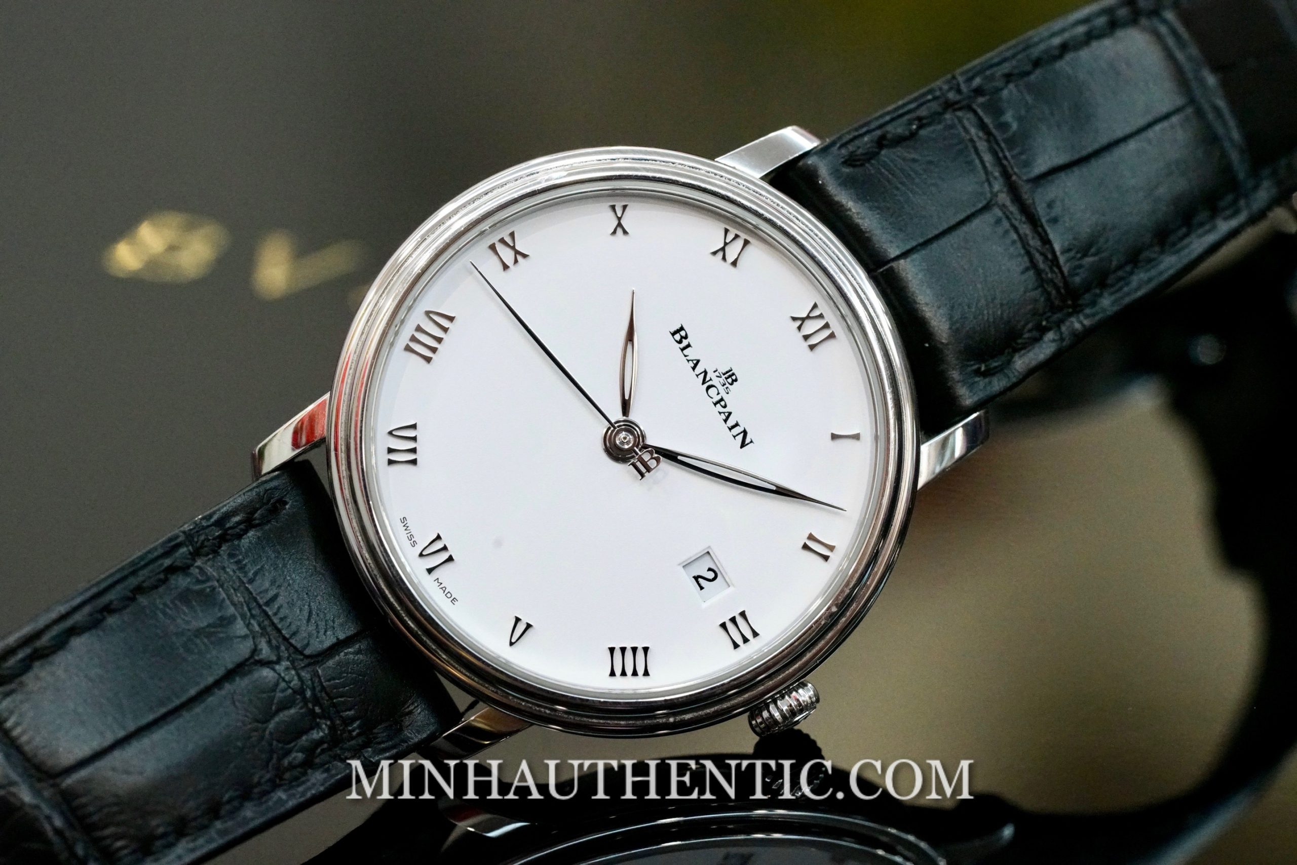 Mặt số được làm tối giản, bỏ các chữ như “automatic”, chỉ còn logo và “swiss made”, để phù hợp với 1 chiếc dress watch. Nhưng nếu nhìn kĩ, có thể thấy các chi tiết đều được hoàn thiện rất hợp lý và kĩ càng.