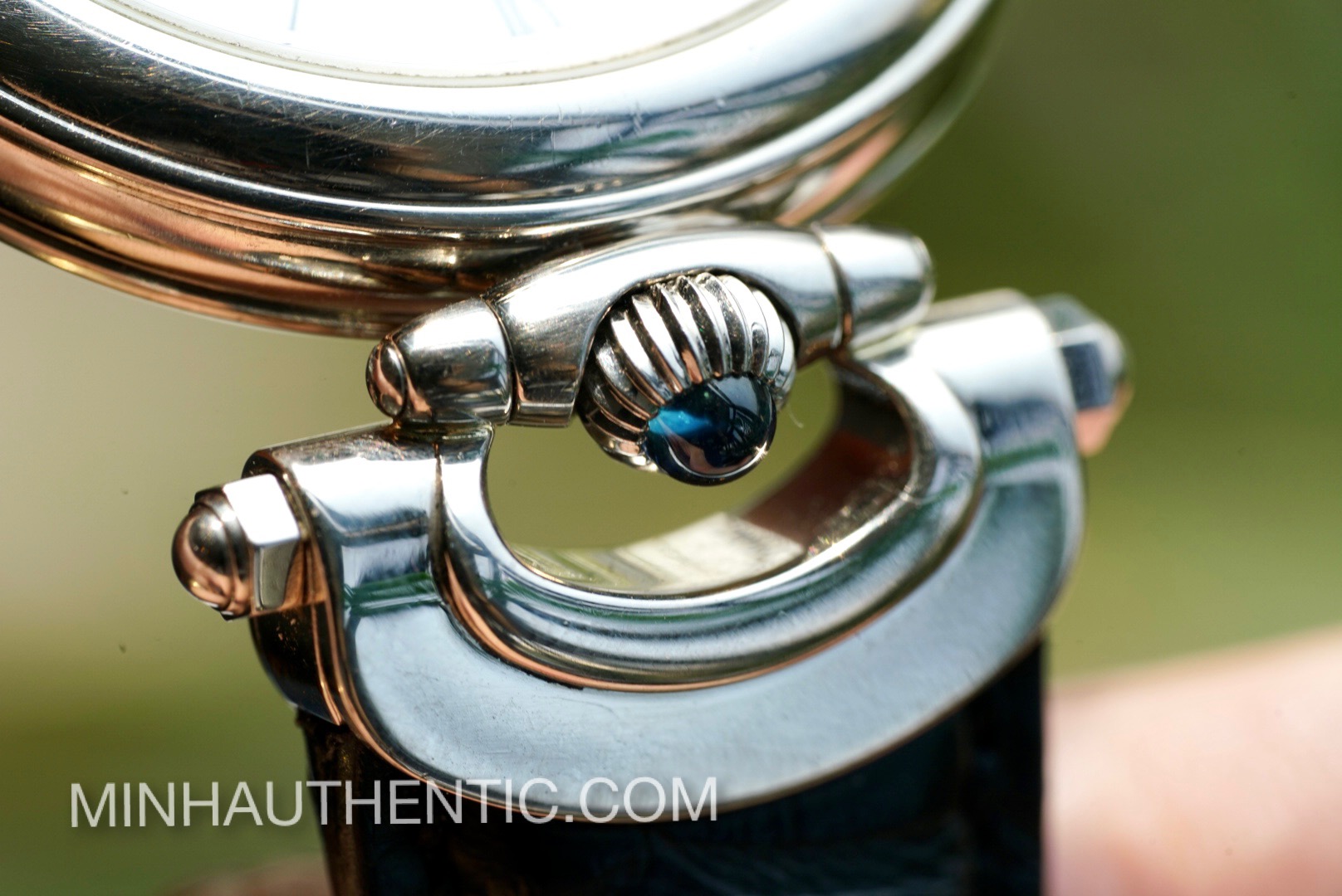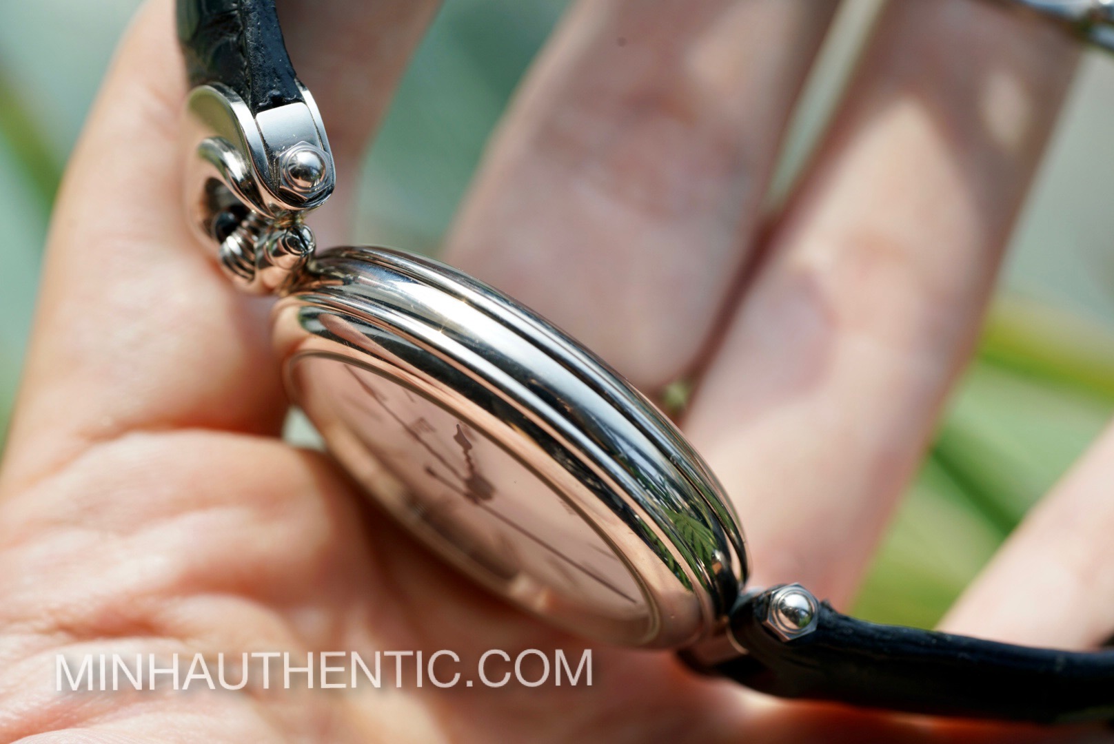 Và một chi tiết tinh tế và đẳng cấp nữa phải cầm vào đồng hồ mới cảm nhận được, đó là phần ngàm lớn nối dây với đồng hồ ở góc 12h có thể gập lên xuống, nhưng có độ tì bám rất vừa phải, chứ không hề thả tự do hay cứng ngắc, khiến cho đồng hồ ôm lấy cổ tay vừa thoải mái nhưng cũng vẫn chắc chắn và giữ form.