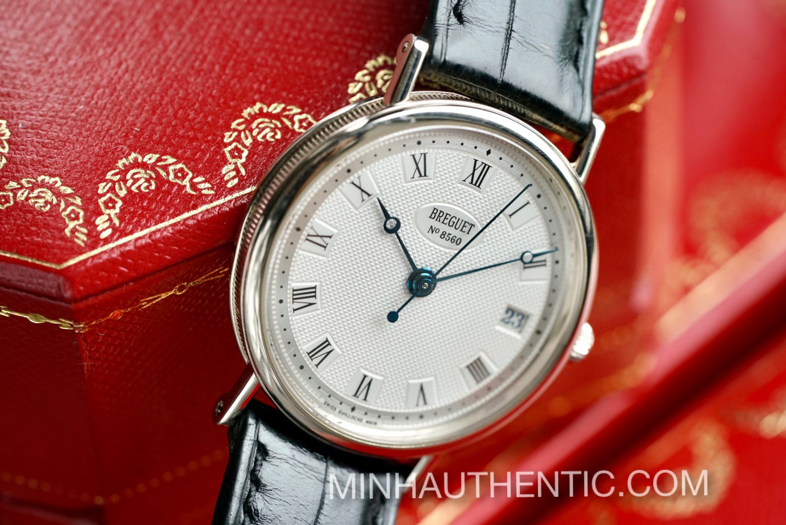 Breguet, hãng đồng hồ cao cấp có lịch sử từ năm 1775, và là một trong số ít hãng từ thế kỉ 18 mà vẫn liên tục tồn tại và phát triển đên ngày nay. Nhìn từ xa, ta đã có thể nhận ra một chiếc Breguet với những chi tiết đặc trưng: kim “mắt ngỗng” nung xanh – do chính Breguet tạo ra, nên ngày nay thế giới vẫn gọi kiểu kim này là “kim Breguet”; cạnh bên được khía như đồng xu, “secret signature” được khắc rất mảnh trên dial…