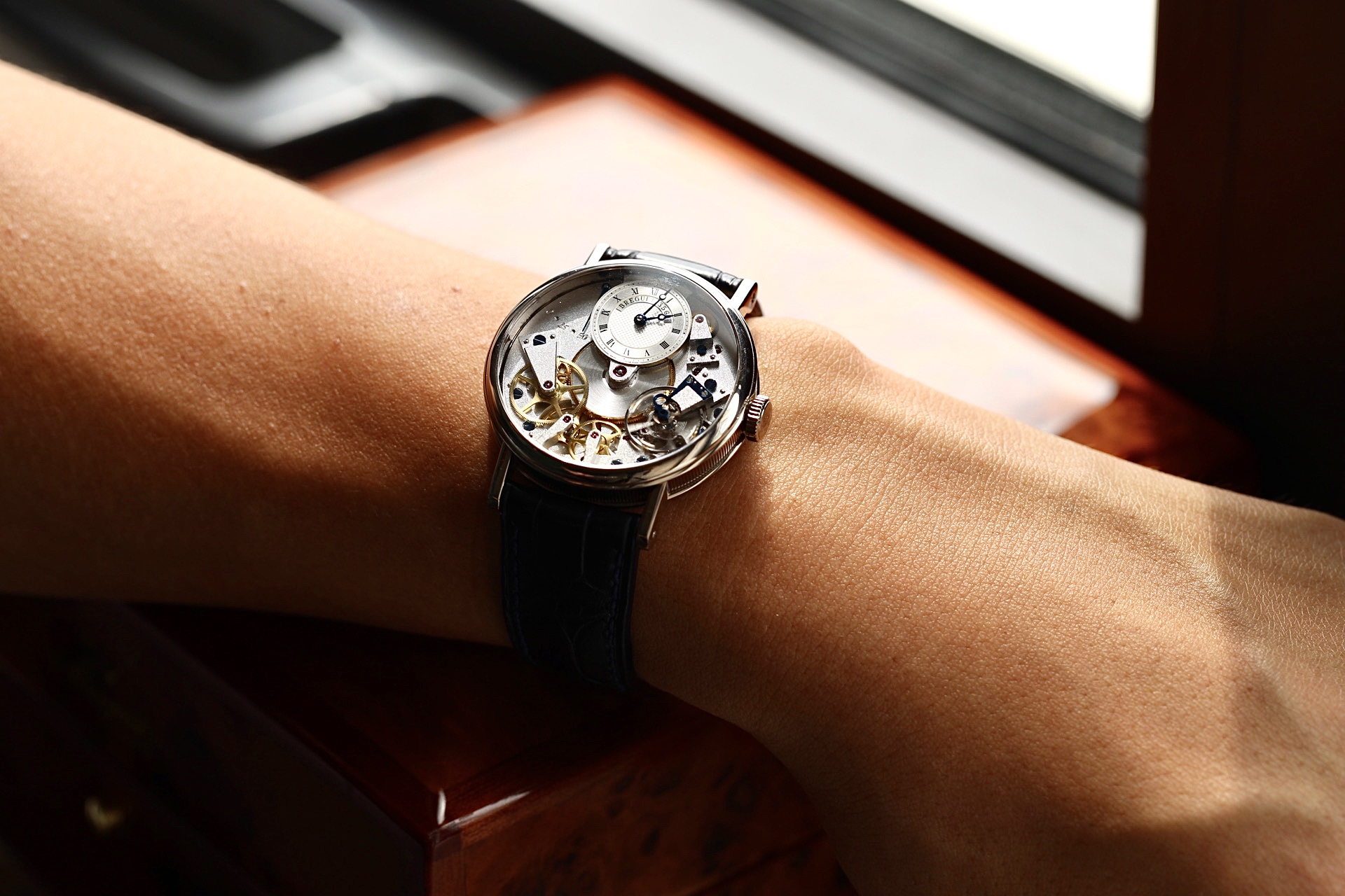 Traditon là collection với thiết kế đặc biệt, rất độc đáo của Breguet khi toàn bộ phần gear train được đẩy lên trên mặt trên, khiến cho chúng ta có thể chiêm ngưỡng toàn bộ cách vận hành của bộ máy. Nó được lấy cảm hứng từ bộ máy của những chiếc “Subscription” được Breguet làm vào cuối thế kỉ 18, đầu thế kỉ 19.