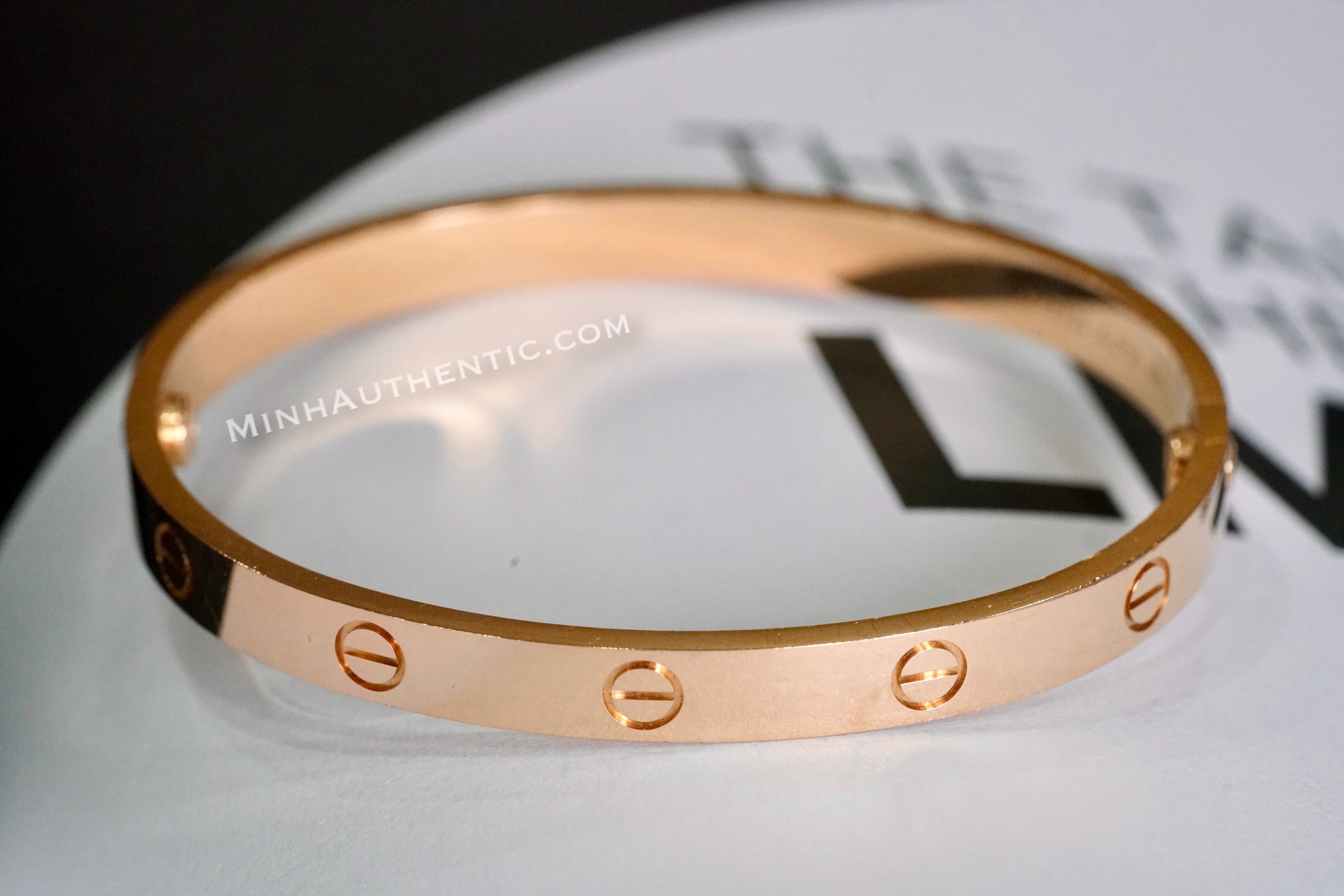 Cartier LOVE 18k Rose Gold Bracelet, tình trạng còn mới đẹp, không phụ kiện. Size 18 dành cho cổ tay khoảng 16-17cm đeo.