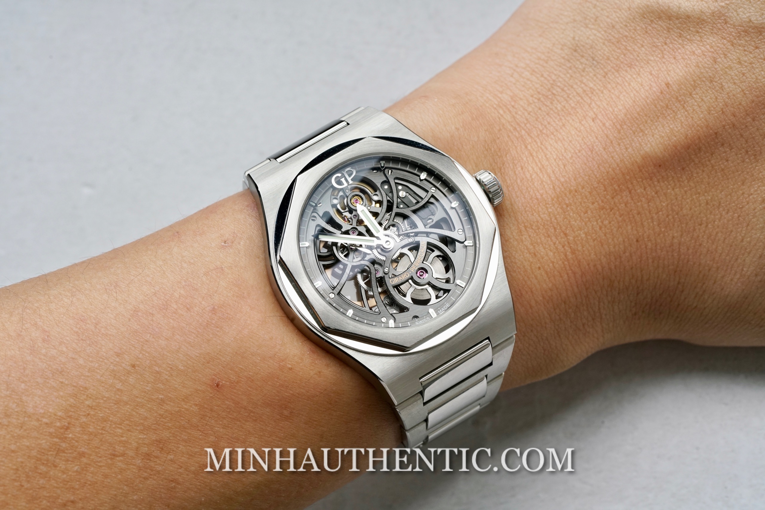 Đồng hồ nam Girard Perregaux Laureato Skeleton 81015-11-001-11A mặt xám, size 42 là phiên bản cao cấp, có giá gấp 3 bản thường. Tình trạng rất mới, fullbox 2022 và bảo hành quốc tế 5 năm.