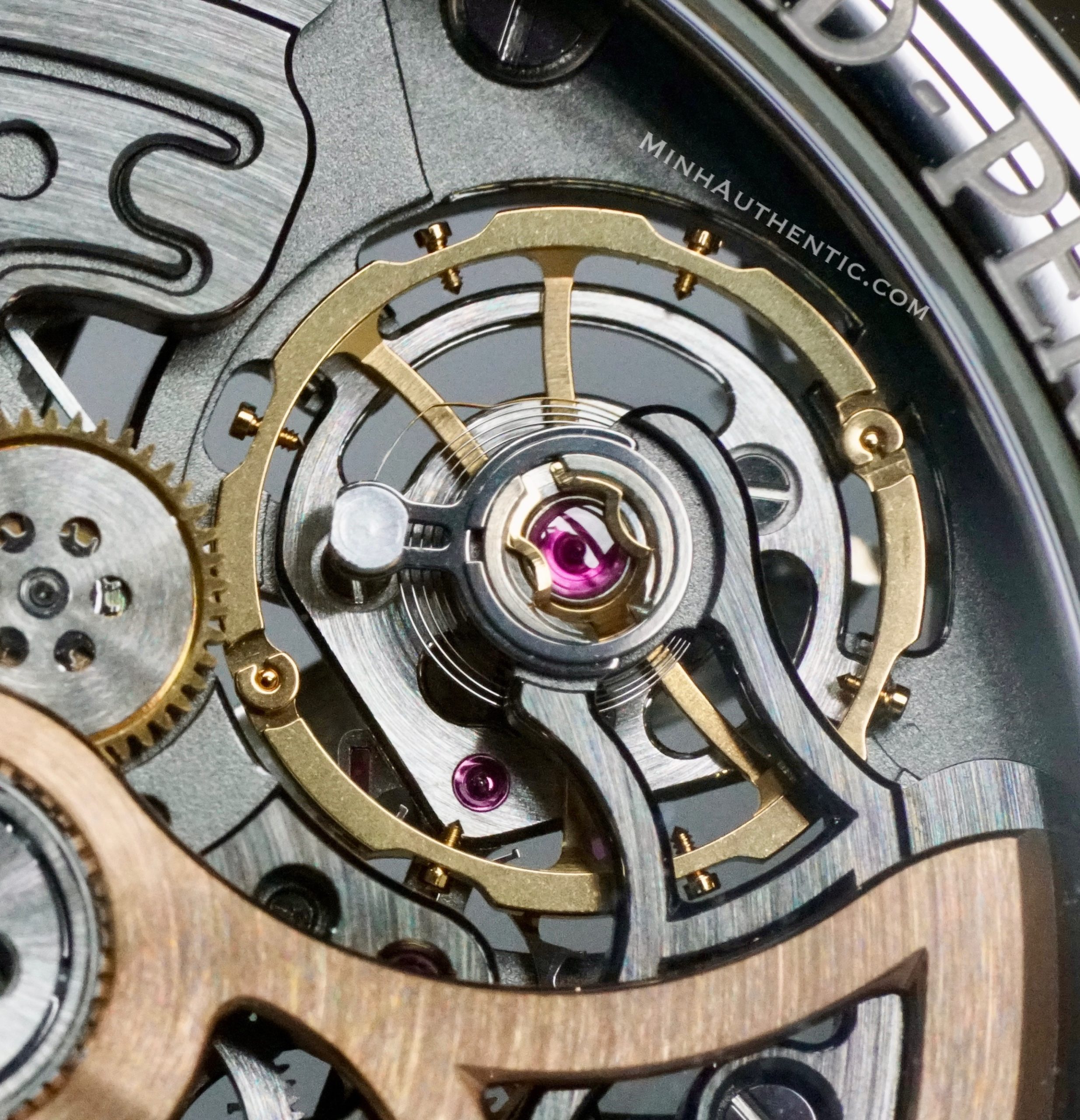 Từng chi tiết của cầu máy đều được phay rất mịn, chạy đồng tâm, ở bề mặt trên và có các cạnh bên được vát bóng thủ công, không một vết gợn. Kể cả ổ cót cũng được làm skeleton, để lộ ra dây cót bên trong, giúp cho người dùng có thể đoán được trạng thái đầy hay sắp hết cót. Nhà sản xuất đã khéo léo khoét gọt, tạo nên những đường cong mềm mại trên cả cầu máy và rotor vàng hồng.