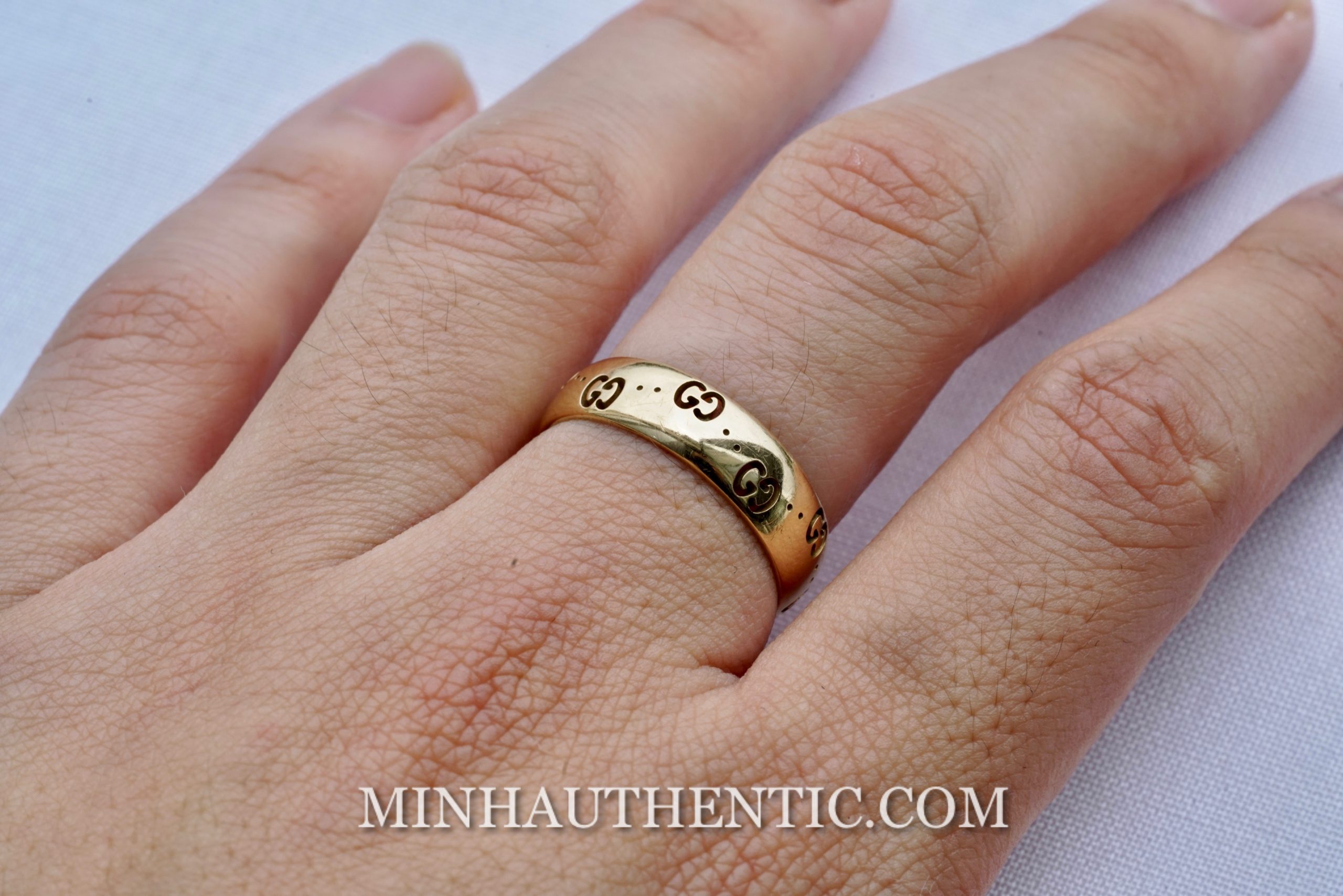 Nhẫn Gucci Icon vàng 18k, bản to 6mm, đường kính lòng trong 19.6mm (tương đương size 62) tình trạng còn đẹp, có hộp.