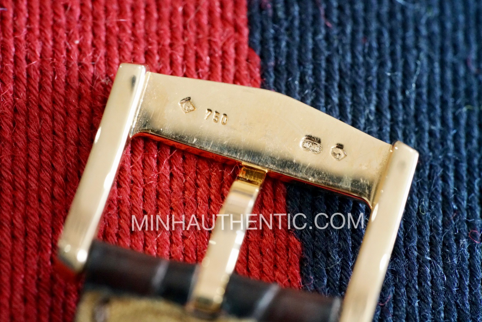 -DÂY: Da cá sấu nâu nguyên bản, khoá cài vàng hồng 18k. 23-18mm