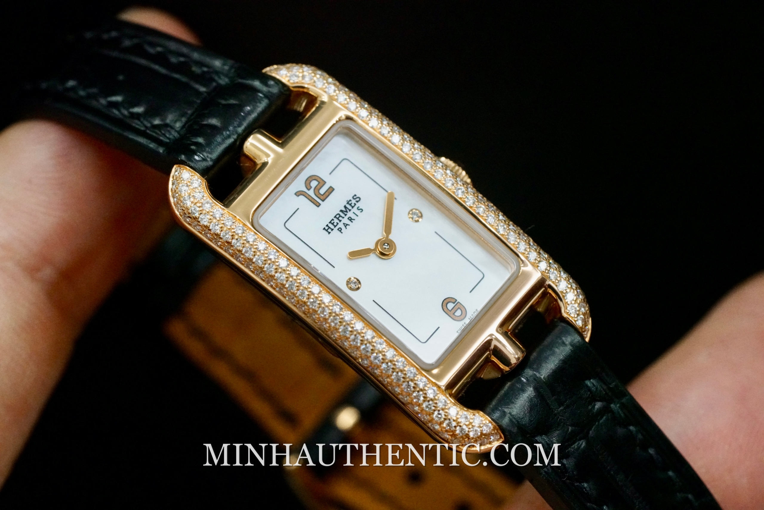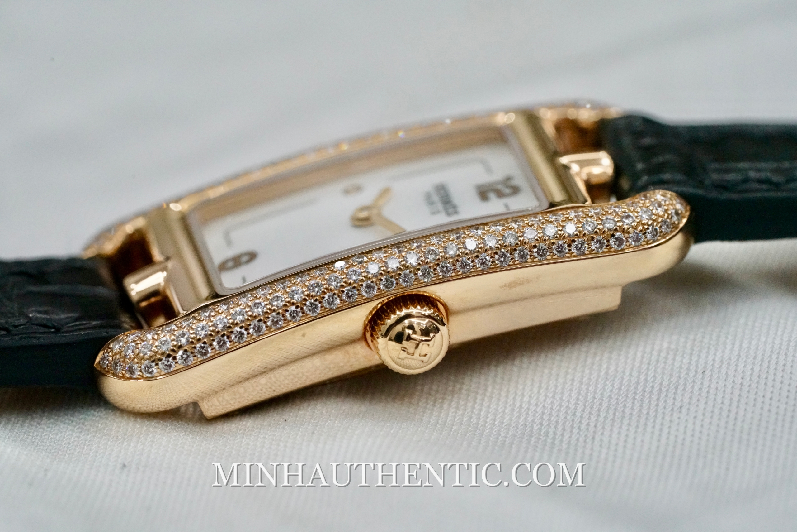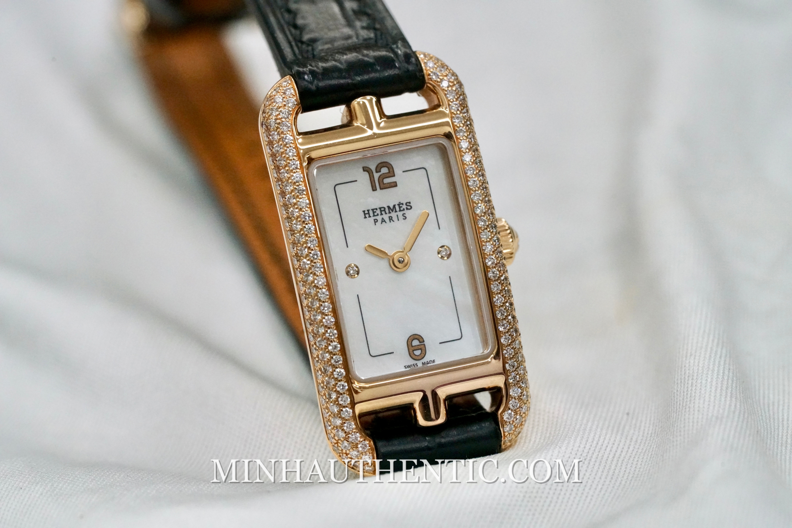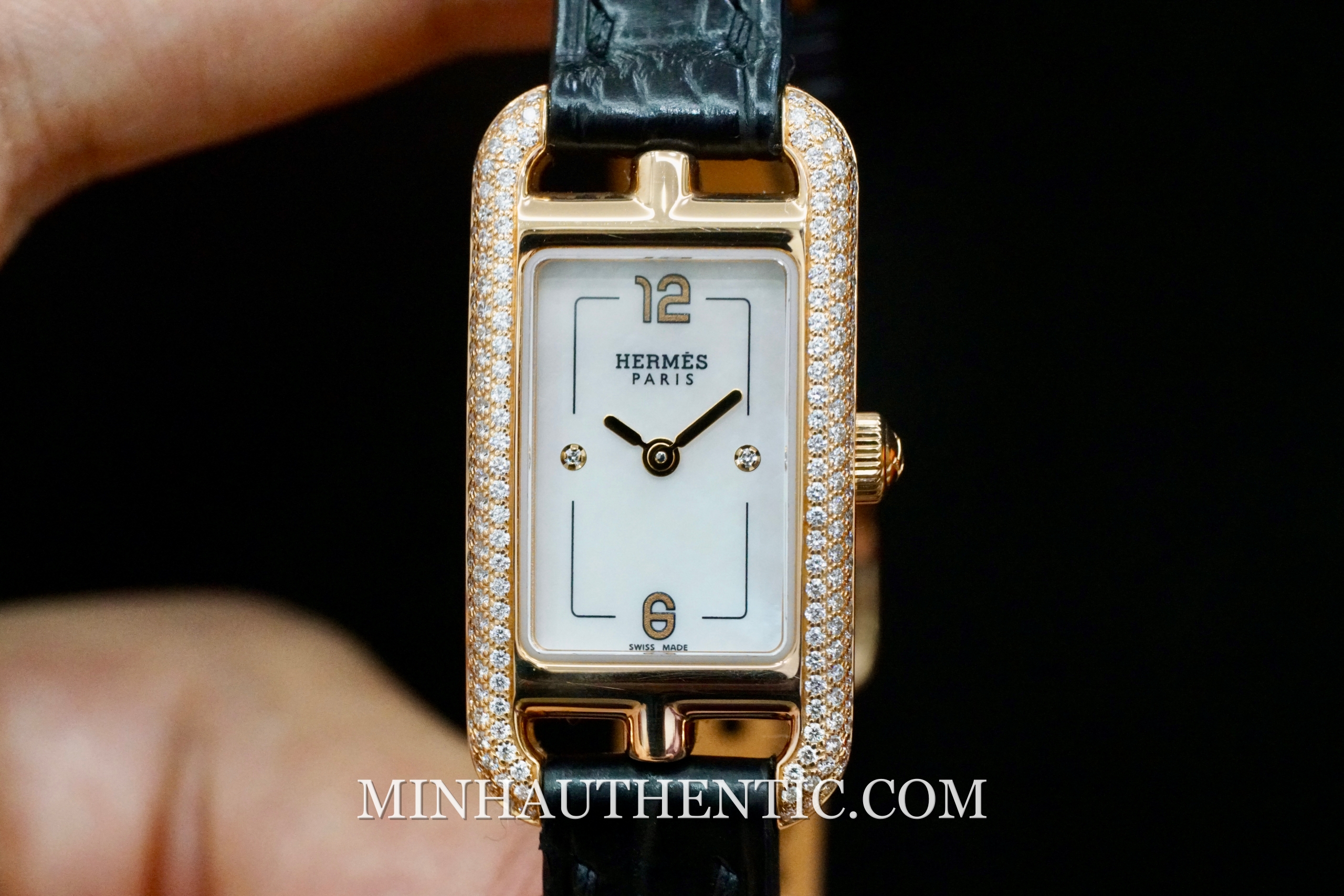 Đồng hồ nữ Hermes Nantucket Small Diamond Rose Gold W044193WW00, phiên bản vàng hồng đính kim cương rất đẹp. Tình trạng đẹp sắc nét, có hộp.
