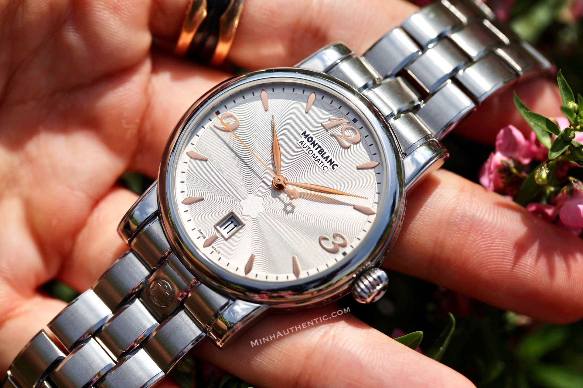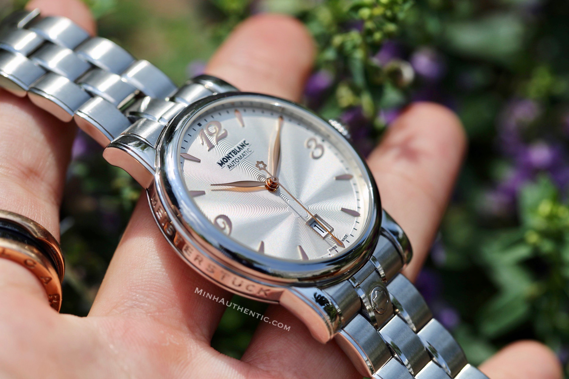 Đồng hồ nam Montblanc Star Date Automatic 105961 dial trắng guilloche và cọc vàng hồng rất đẹp