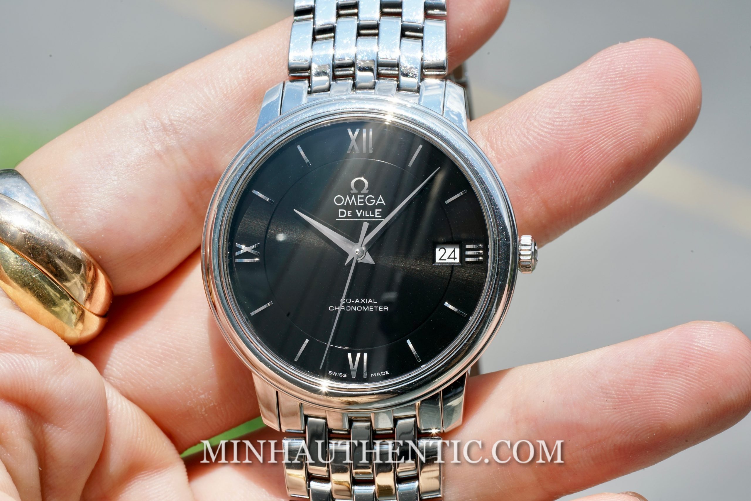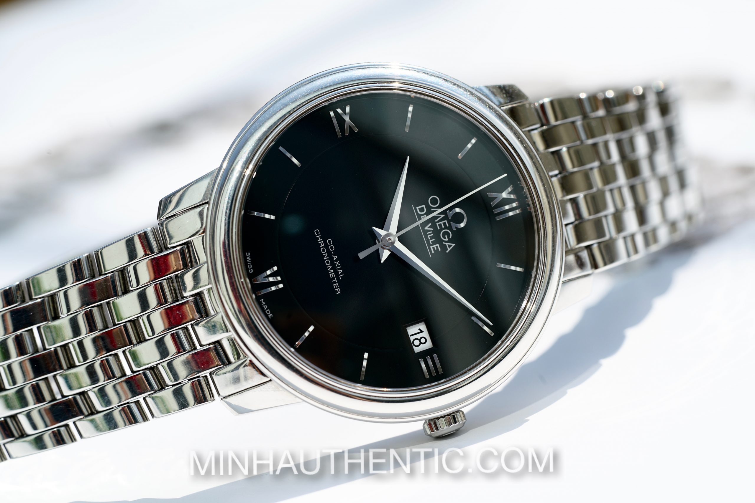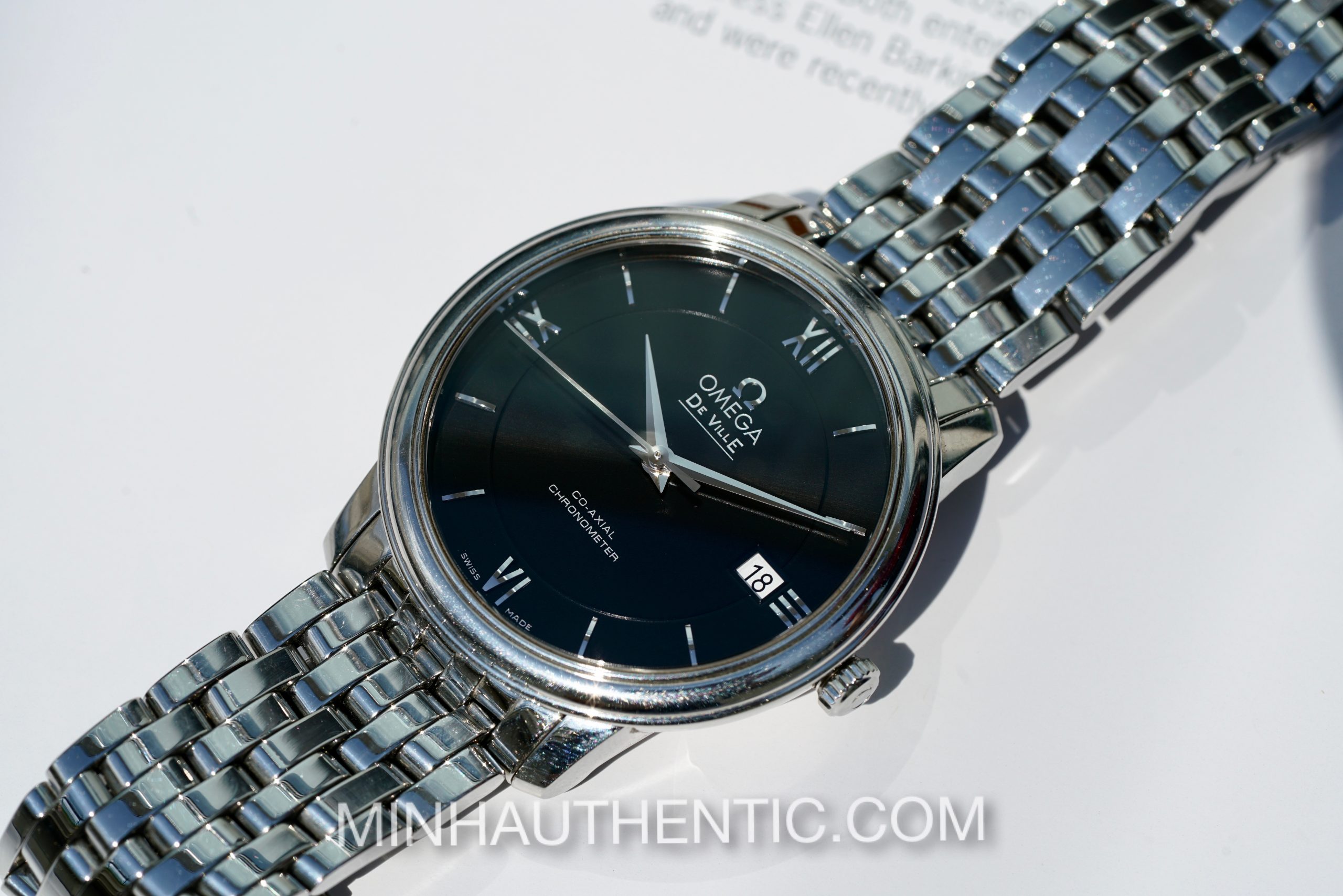Đồng hồ nam Omega De Ville Prestige 36.8mm Co-Axial Chronometer Black 424.10.37.20.01.001 phiên bản dây thép. Tình trạng còn đẹp, fullbox còn nguyên hộp sổ thẻ, hoá đơn.