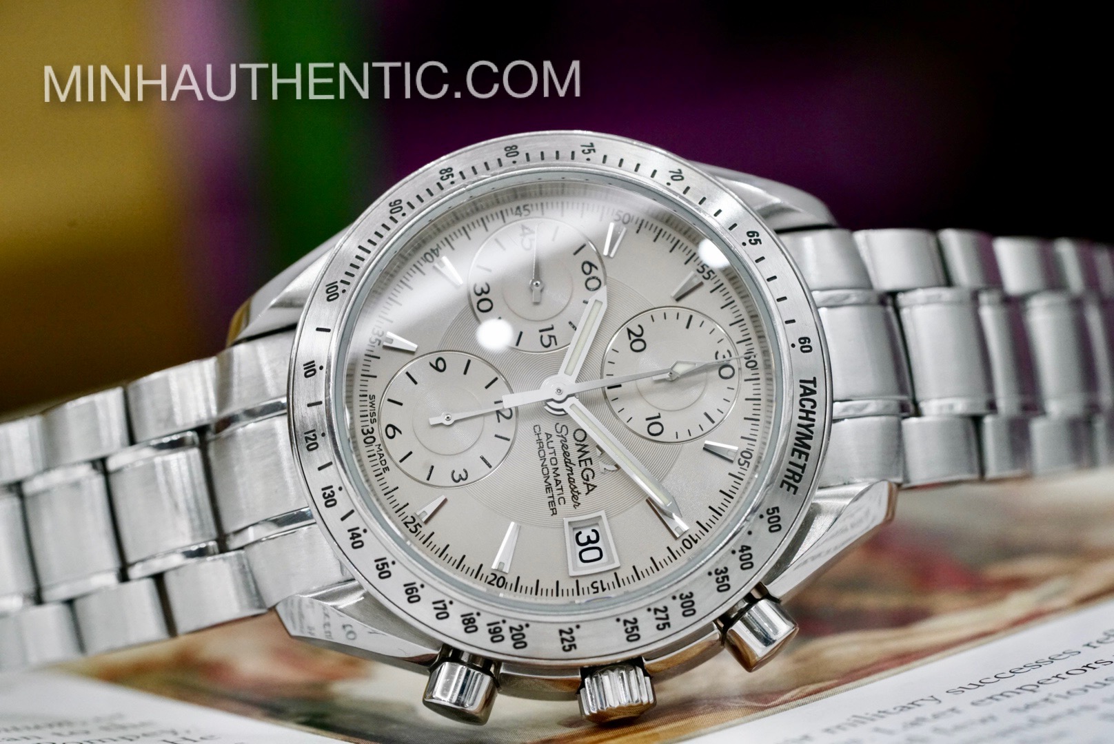 Đồng hồ nam Omega Speedmaster Date mặt trắng 3211.30.00, đáy ngựa lớn, size 40. Đã qua sử dụng, không hộp sổ, tình trạng đẹp.