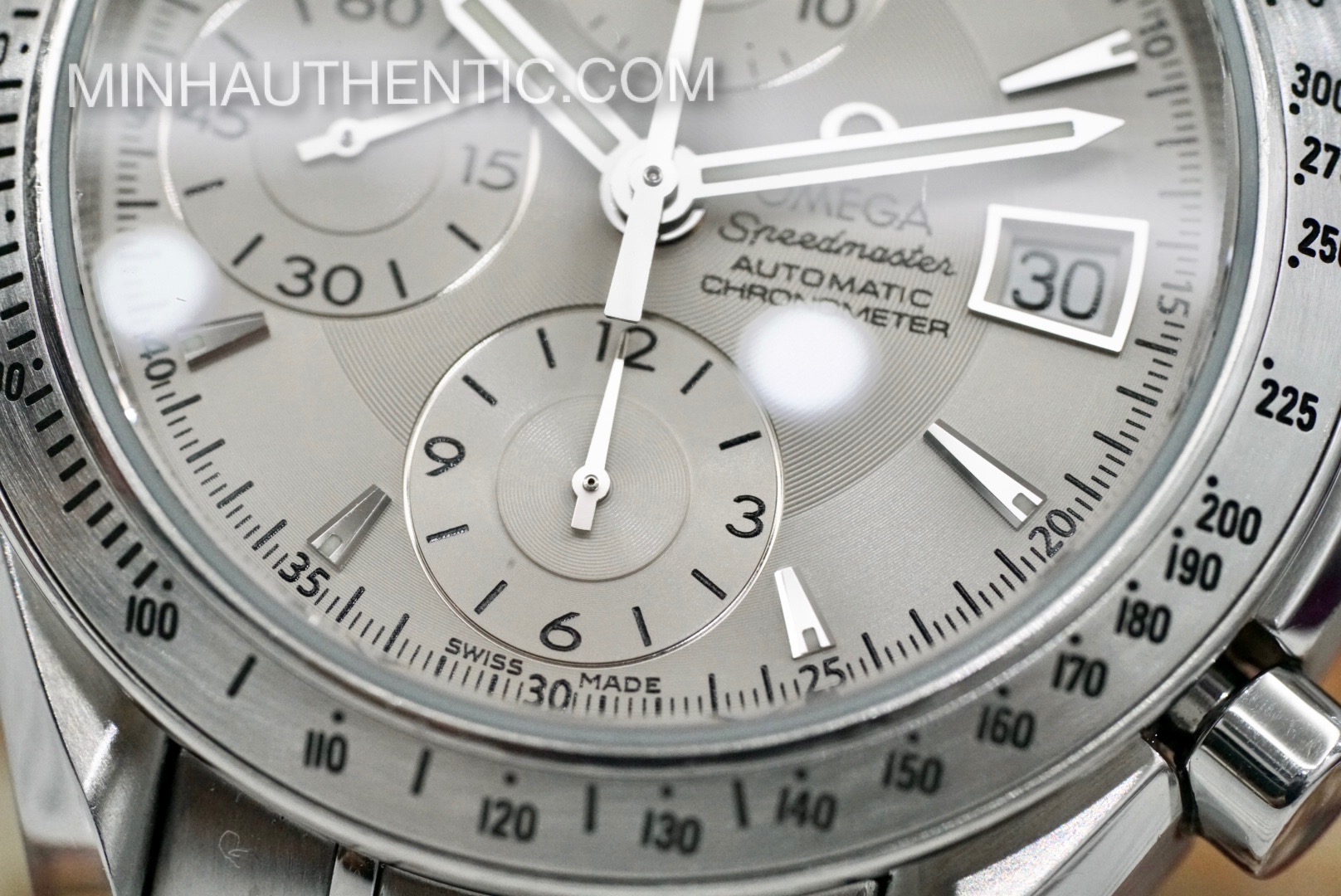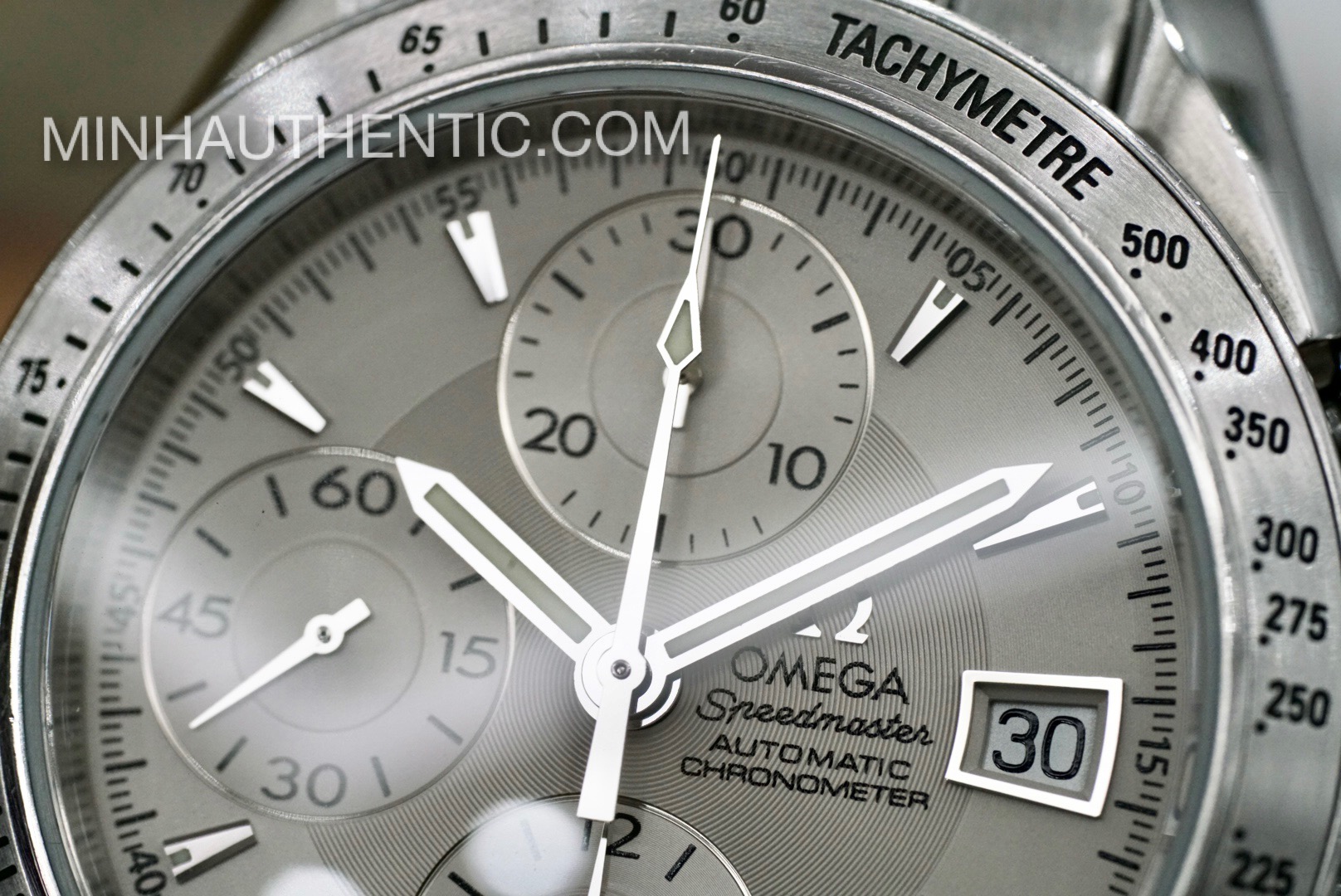 Đây là mẫu Speedmaster Date thế hệ thứ 3, là thế hệ đầu tiên với đáy “ngựa to” và nhiều nâng cấp so với 2 đời “ngựa nhỏ” đầu tiên. Kích cỡ được nâng lên từ 39 thành 40mm, và bản dây cũng được mở rộng ra thêm 1mm, tạo cảm giác lớn, đầm chắc hơn. Mắt dây cũng được làm đẹp hơn và khoá gập có vi chỉnh, đeo thoải mái nhưng chắc chắn hơn đời cũ. Và độ chống nước cũng được nâng lên từ 30m thành 100m, khiến cho người dùng có thể đeo đi bơi thoải mái.
