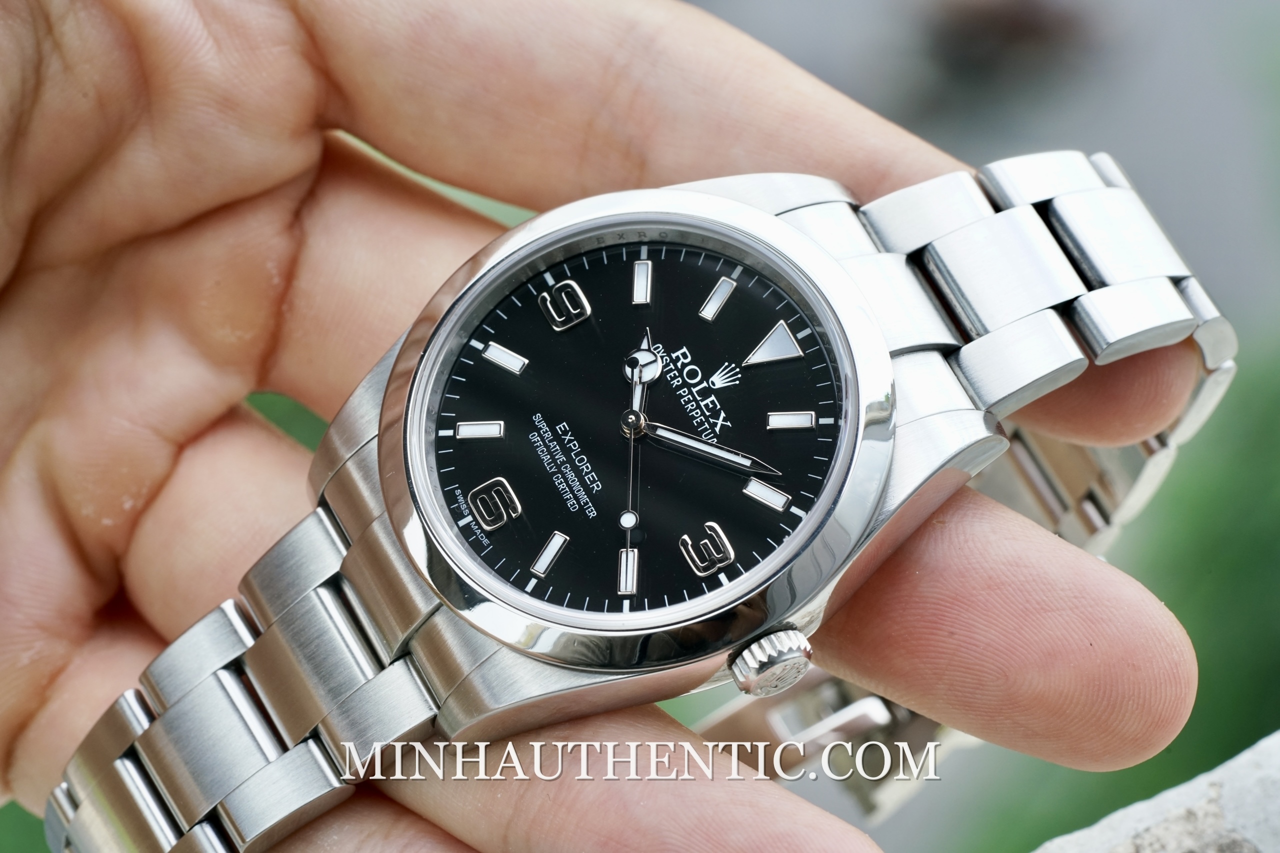 Đồng hồ nam Rolex Explorer 39mm Mark 1 mã 214270, size 39. Dạ quang Chromalight xanh blue (sản xuất khoảng 2013-16). Không hộp sổ thẻ.